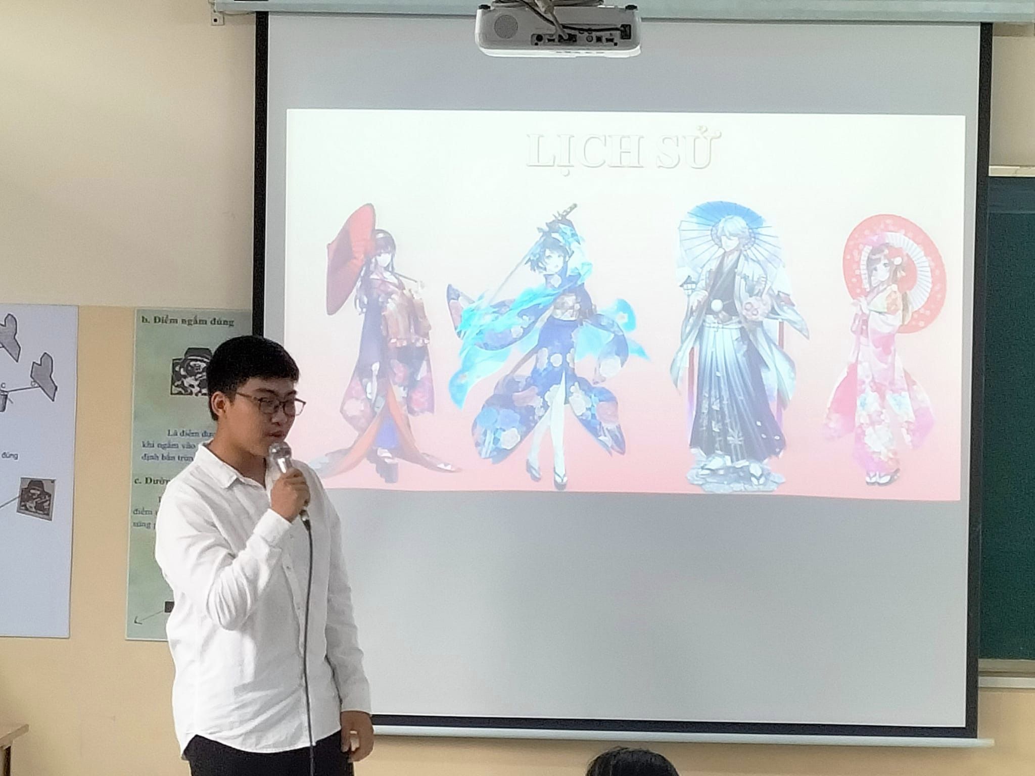 Đầu tiên các bạn được chiêm ngưỡng các tiết mục ca hát do các sinh viên với giọng ca siêu cháy với những bài hát bằng tiếng Nhật cực chất. Tiếp theo chương trình là bài giới thiệu về Kimono. Nội dung bài sẽ kể về nguồn gốc, lịch sử, kiểu dáng, phân loại và ý nghĩa của hoa văn và màu sắc của chúng ở đất nước mặt trời mọc. Kết thúc phần thuyết trình là đến với trò chơi đặc sắc với những phần thưởng hấp dẫn. Cuối buổi sinh hoạt mọi người sẽ được diện trên mình bộ Yukata ( Một loại kimono của Nhật ).CLB Tiếng Nhật ở mỗi buổi sinh hoạt đều mang đến một chủ đề khác nhau, để bạn có tham gia học hỏi được nhiều thứ hơn cũng như góp ý kiến để CLB có thể phát triển hơn nữa trong tương lai.
