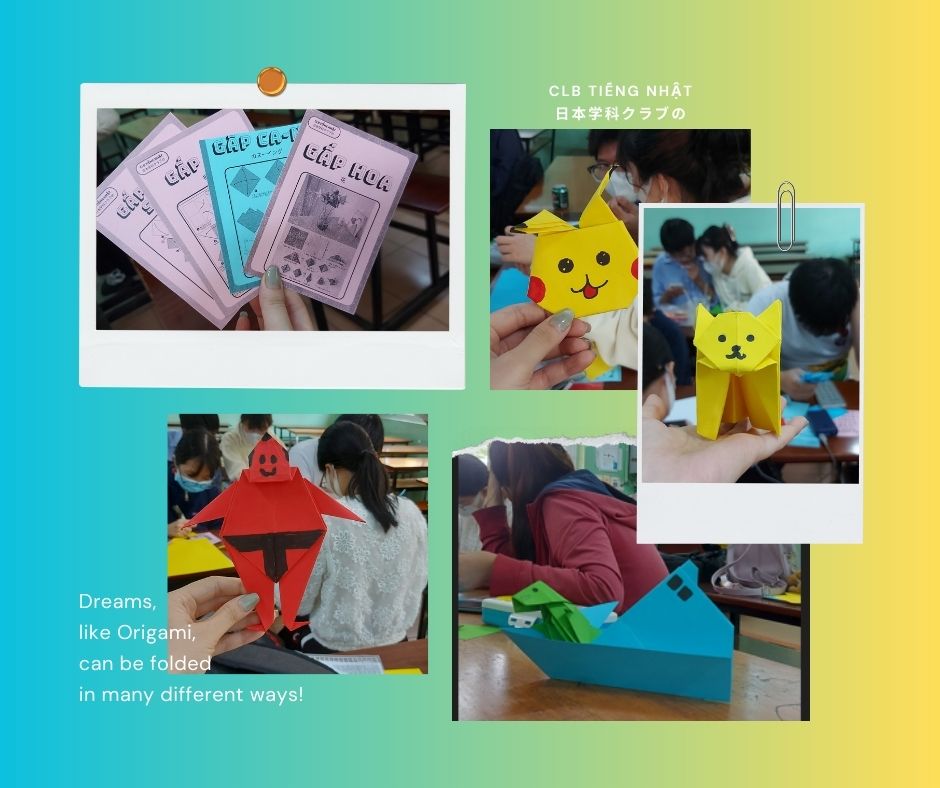 Chắc hẳn ai trong chúng ta cũng đã từng một lần gấp máy bay, hạc giấy, ngôi sao,… cho vào lọ thủy tinh lúc nhỏ nhưng không phải ai cũng biết về nguồn gốc, xuất xứ của loại hình nghệ thuật gấp giấy – Origami. Từ khi xuất hiện thì Origami đã trở thành một nét thú vị trong phong tục của người Nhật. Chỉ cần sử dụng những mảnh giấy nhỏ là đã có thể biến hóa thành những hình dạng khác nhau, có thể là một con vật, bông hoa, hay đồ vật nào đó. Nhằm giúp các bạn sinh viên hiểu hơn về nghệ thuật đặc sắc, thú vị này, CLB Tiếng Nhật đã tổ chức chương trình gấp giấy nghệ thuật Origami vào lúc 8 giờ sáng thứ 7 (24/06/2023) tại phòng B06. Dưới sự chia sẻ và hướng dẫn của ban tổ chức, các bạn đã hiểu hơn về nghệ thuật gấp giấy và có cơ hội tự tay trải nghiệm sự khéo léo với bộ môn này.
