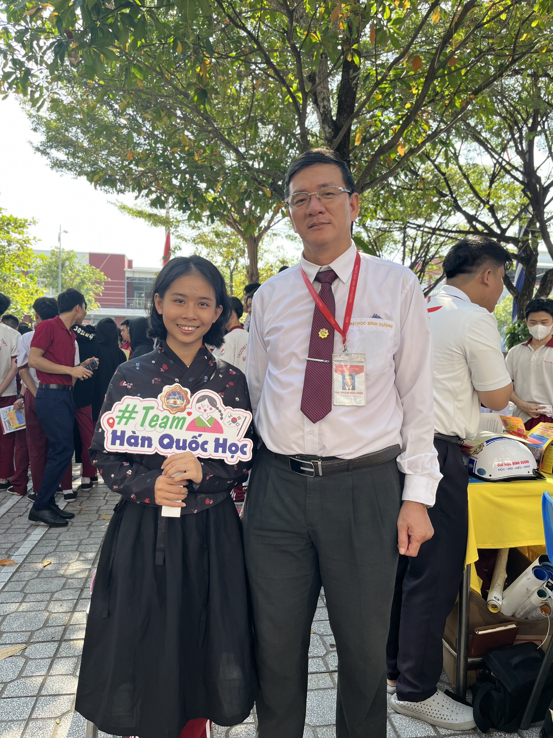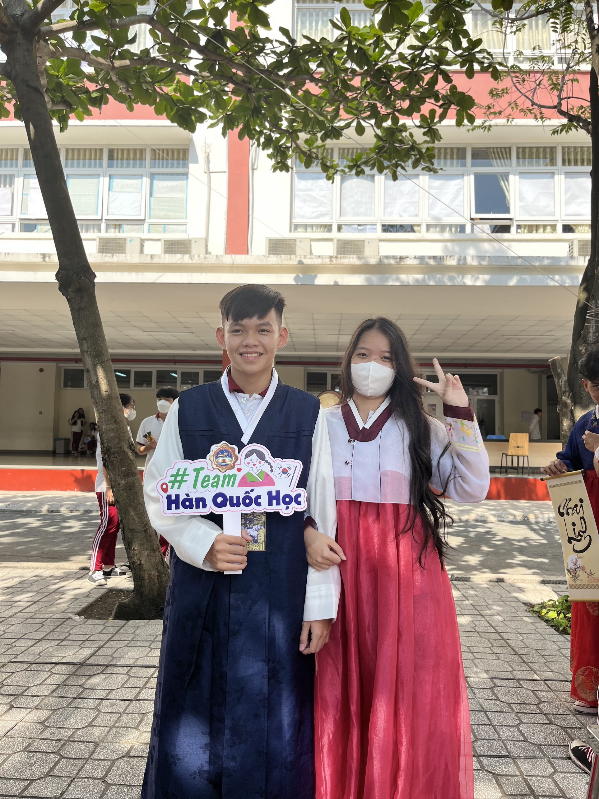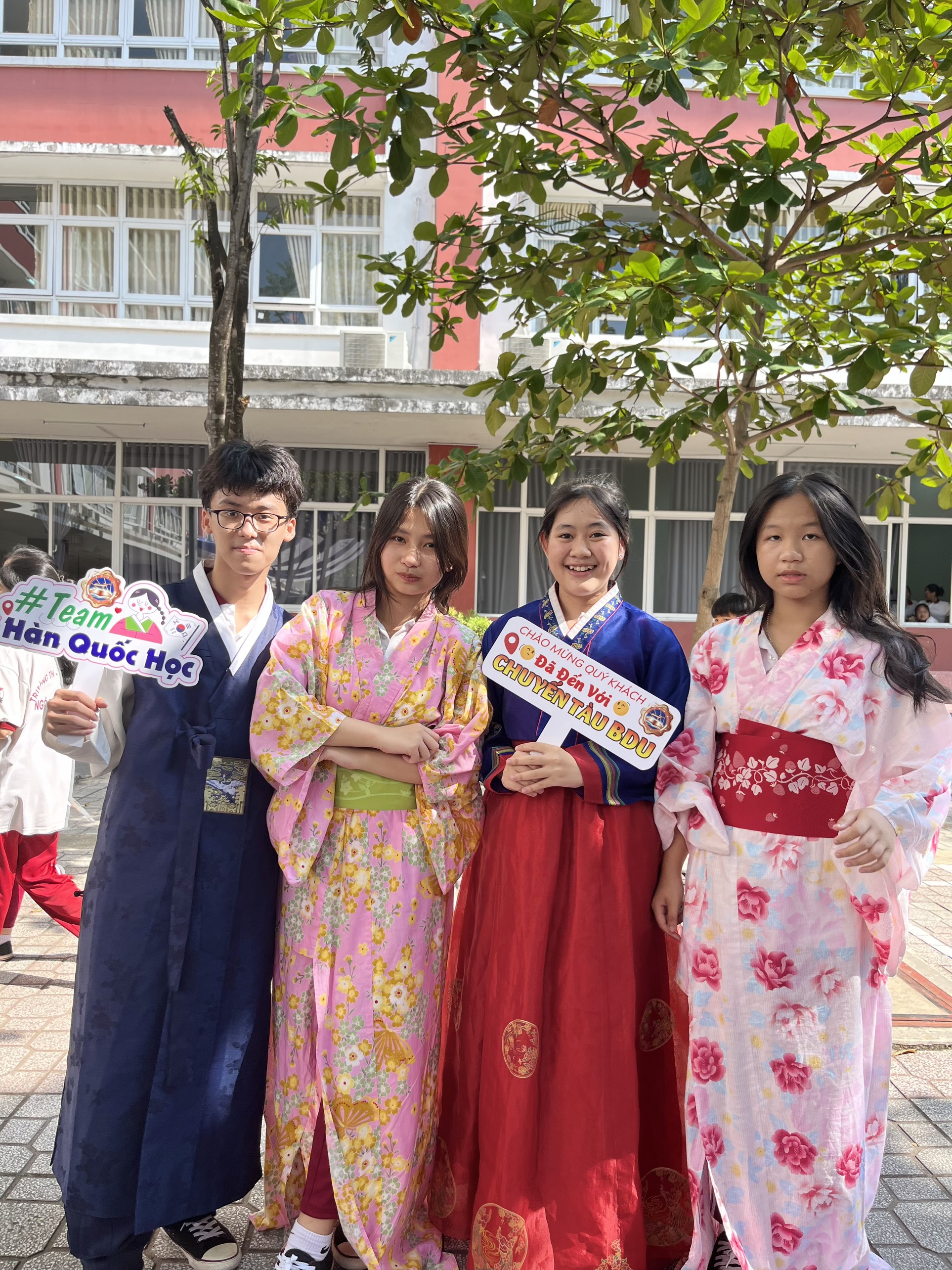 Các bạn học sinh đã được trực tiếp trải nghiệm trang phục truyền thống Hanbok và Yukata